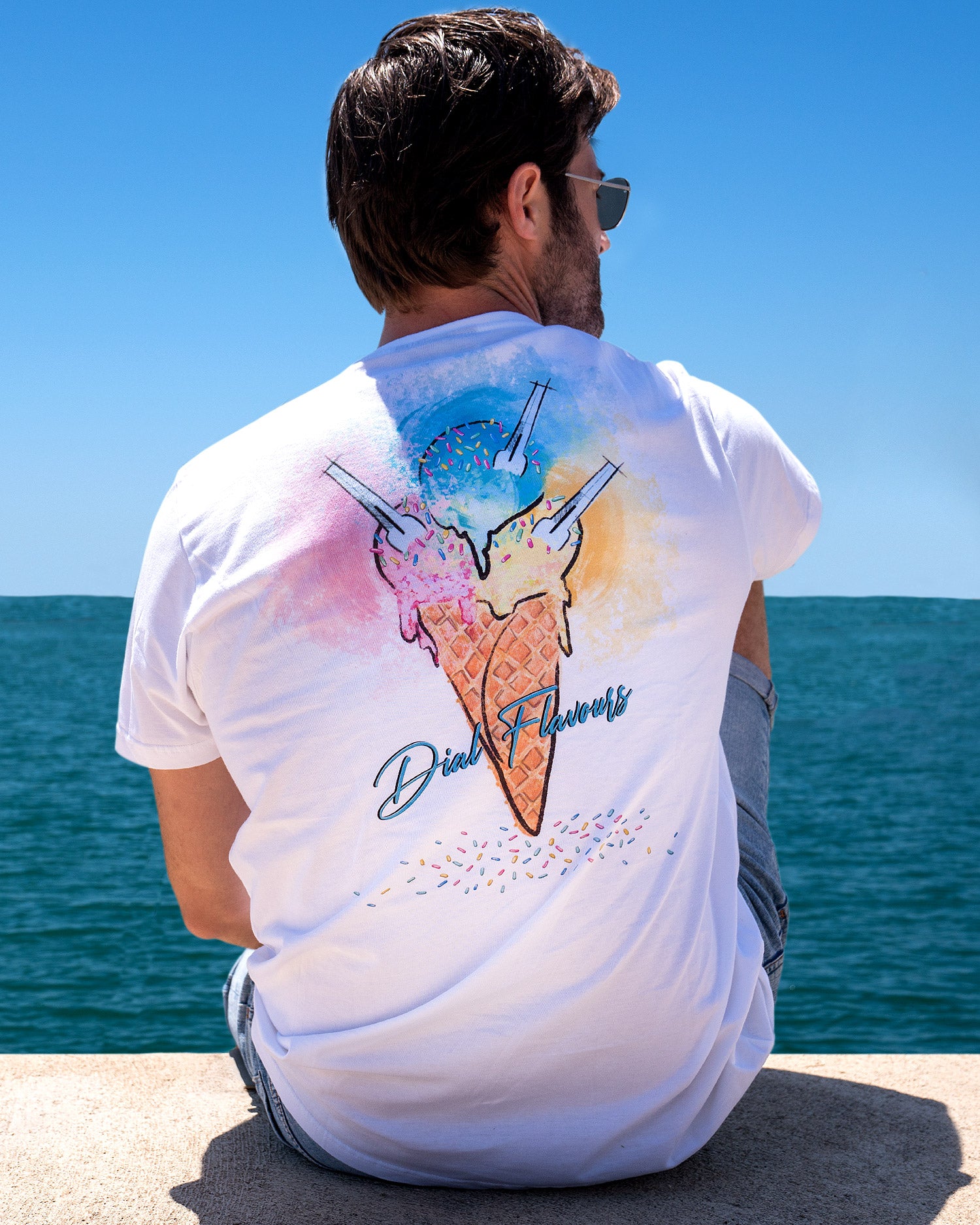 This watercolor print is the answer to a 70’s trend in dial finishes. Our ice cream represents three colors of one of the most fashionable watches out there.