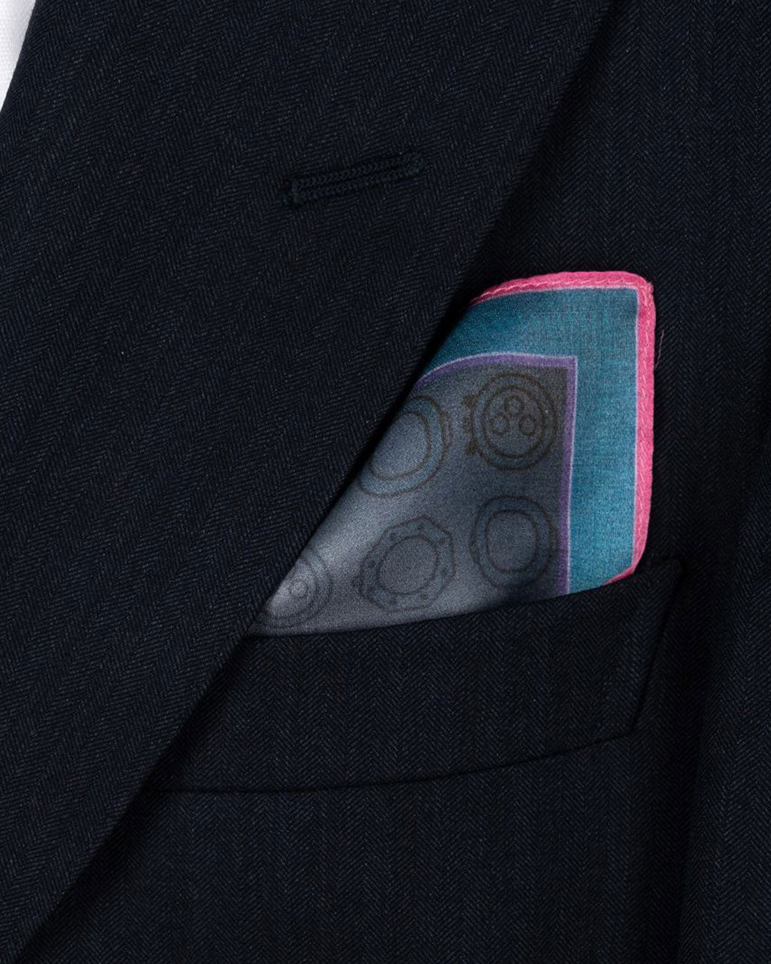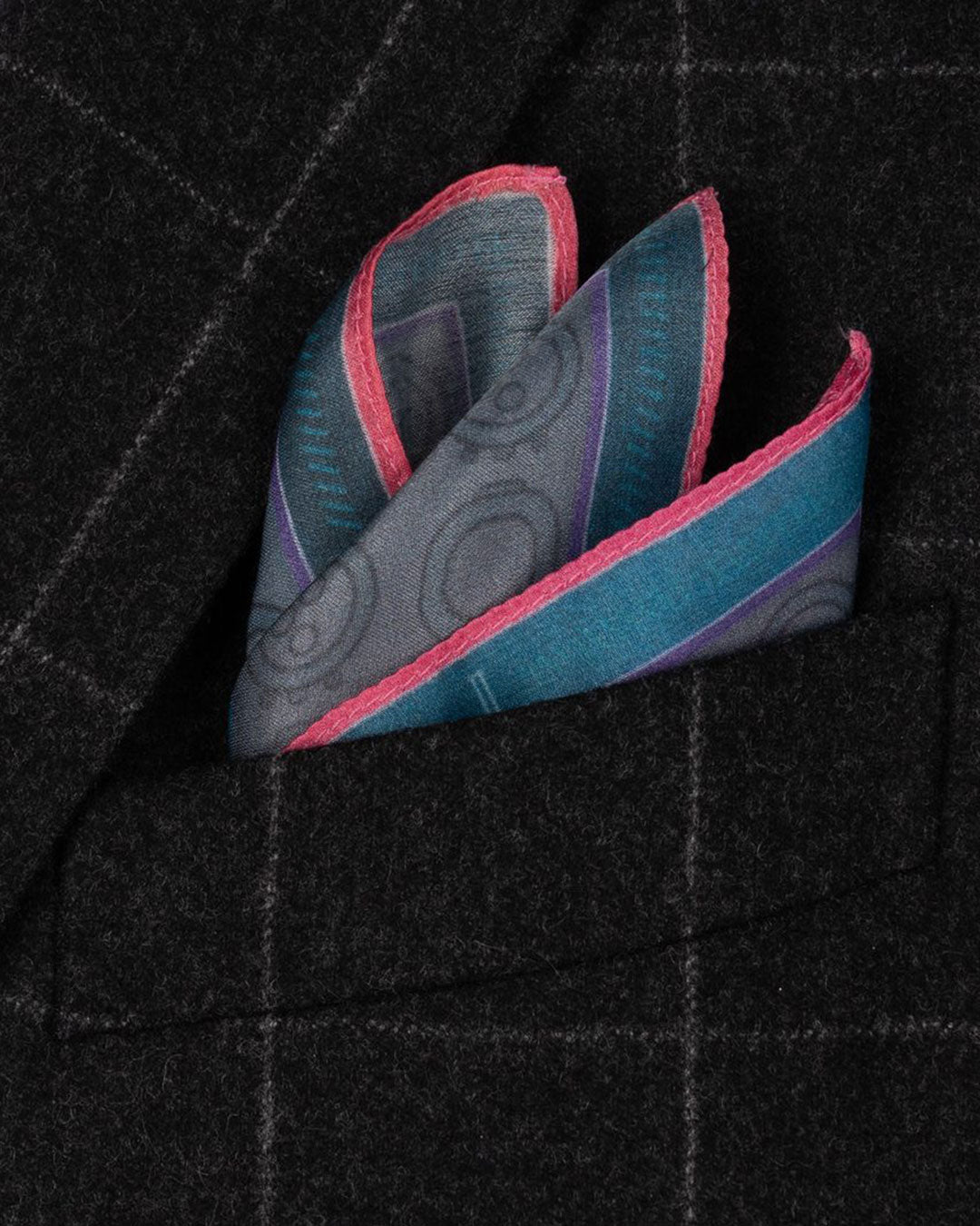 We created an extremely versatile pocket square, by design you can flaunt it if you display the edges or be more elegant and discreet if you show the central part of the pocket square.