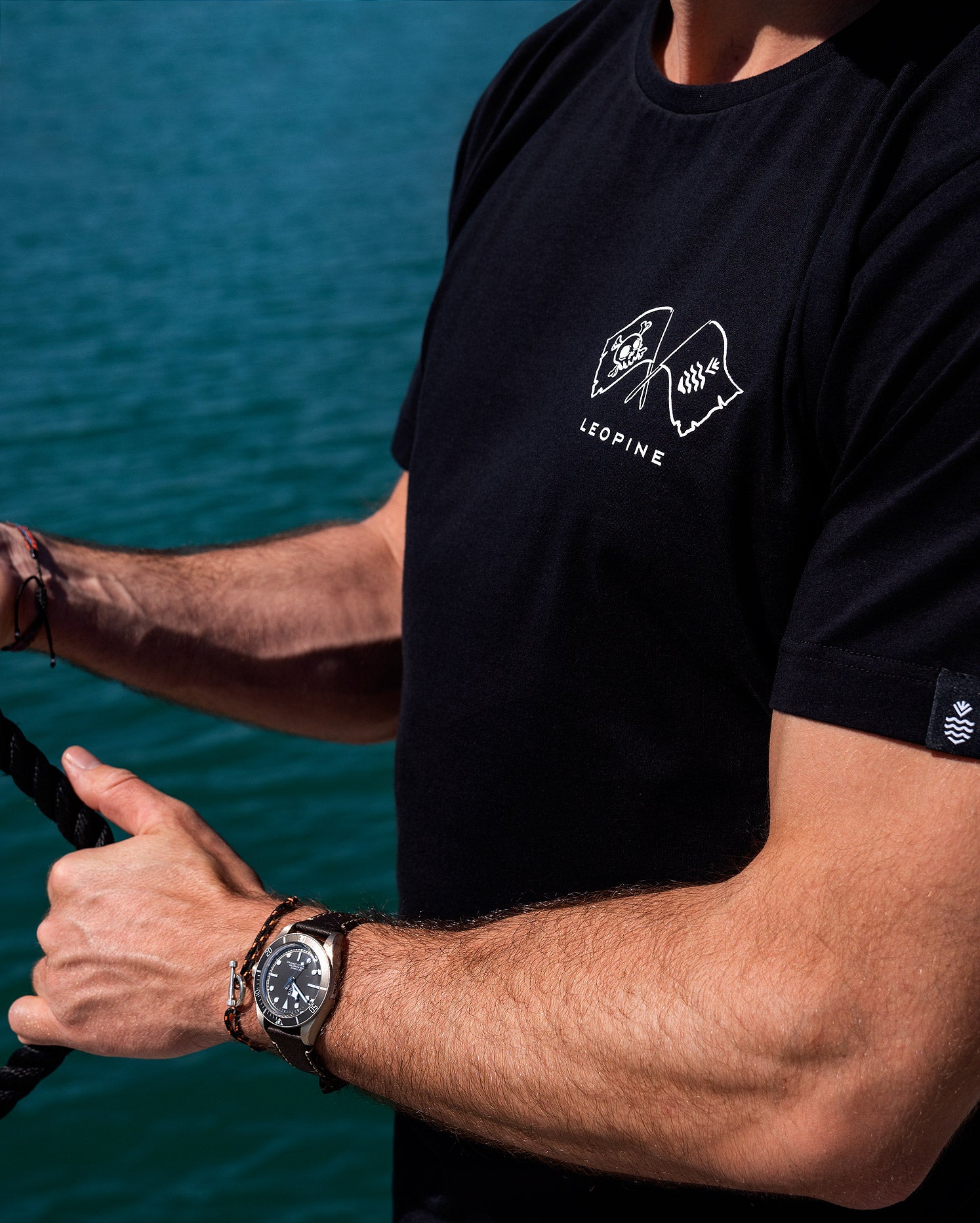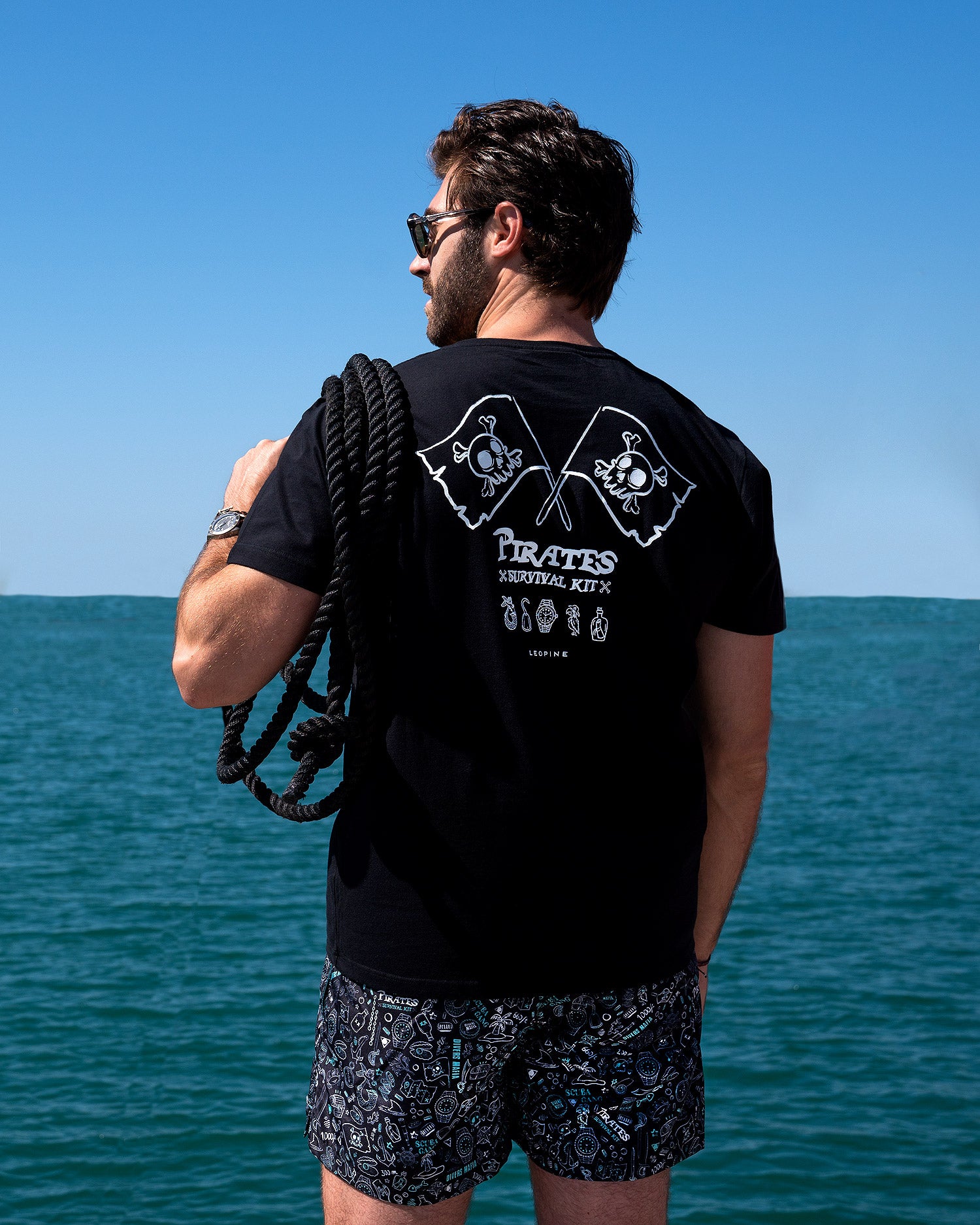This black t-shirt is what Henry Morgan would wear in Miami after plundered some Spanish Galleons in the Caribbean Sea. In this exclusive pattern you will find every tool a true pirates need, and there is a watch, for sure. There are not evidences, but we are sure there were all wearing diver watches. You never know what you have to do when you are a pirate. So the diver watches are the best option for your lifestyle. Sometimes Monaco or Vegas could be wilder than an offshore battle.